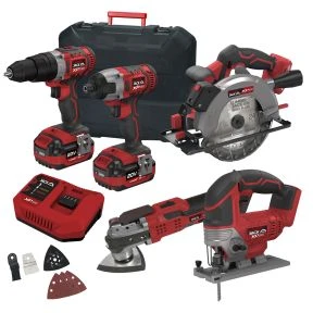 The Lumberjack 5 piece XP SERIES power tool kit includes an Impact Driver, Combi Drill, Jigsaw, Multi Tool, Circular Saw, 1 x Fast Chargers, 2 x 4.0Ah Batteries & 1 x Case for ease of transportation & 1 x Small Tote Bag