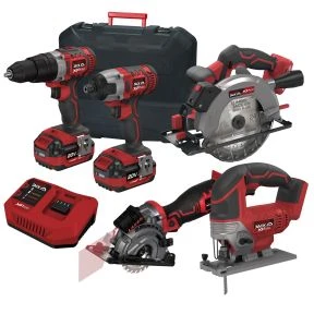 The Lumberjack 5 piece XP SERIES power tool kit includes an Impact Driver, Combi Drill, Jigsaw, Mini Plunge Saw, Circular Saw, 1 x Fast Chargers, 2 x 4.0Ah Batteries & 1 x Case for ease of transportation, 1 x Small Tote Bag