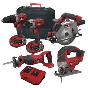 The Lumberjack 5 piece XP SERIES power tool kit includes an Impact Driver, Combi Drill, Jigsaw, Recip saw, Circular Saw, 1 x Fast Chargers, 2 x 4.0Ah Batteries & 1 x Case for ease of transportation, 1 x Small Tote Bag.