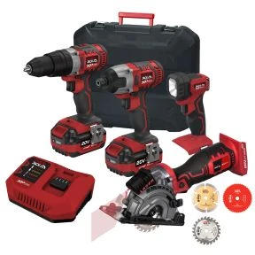 The Lumberjack 4 piece XP SERIES power tool kit includes an Impact Driver, Combi Drill, Mini Plunge Saw, LED Torch, 1 x Fast Chargers, 2 x 4.0Ah Batteries & 1 x Case for ease of transportation.