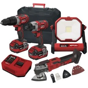 The Lumberjack 4 piece XP SERIES power tool kit includes an Impact Driver, Combi Drill, Multi Tool, Work Light, 1 x Fast Chargers, 2 x 4.0Ah Batteries & 1 x Case for ease of transportation.