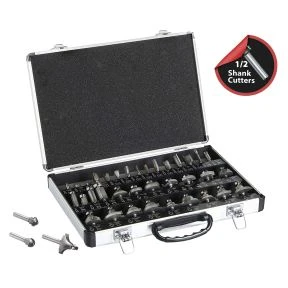 Lumberjacks new 35 piece cutter set contains a range of popular Tungsten Carbide Tipped cutters for a variety of applications. 1/2 inch shank diameter. For softwood, hardwood, chipboard, plywood and MDF. Excellent value for money. Comes in an aluminium carry case.